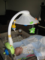 Okay, guys, here are some more pictures for you to see. We've got Jonah on our bed in one. One is of Luke showing Jonah his official birth certificate, and in another he is reading the Bible with him. Also, we went and visited Luke's family on Sunday, and you'll see Mr. Condit and Uncle Jim with Jonah. And lastly, I wanted you to see the mobile that Jonah is in love with! Enjoy!!!
