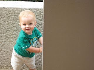 We spent some time outside yesterday afternoon. First we went to the fountain, and Jonah played peek-a-boo with the water. He'd get down and stand up, get down, and stand up.